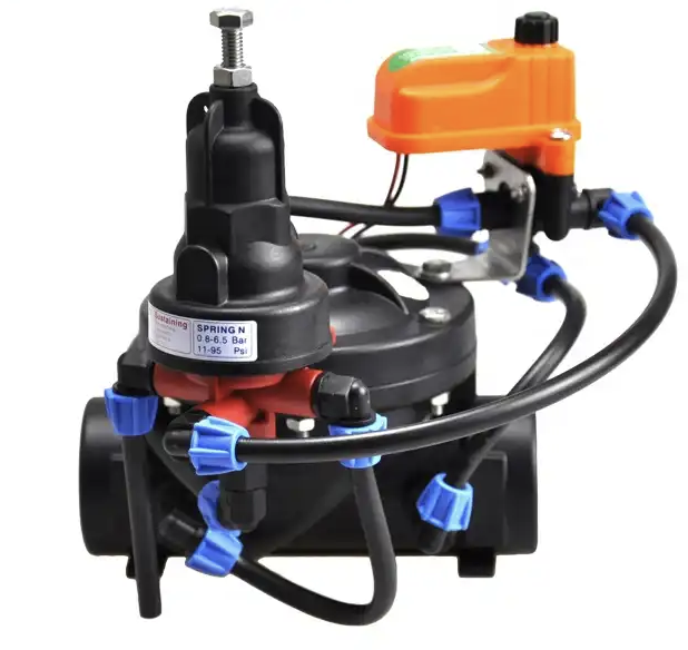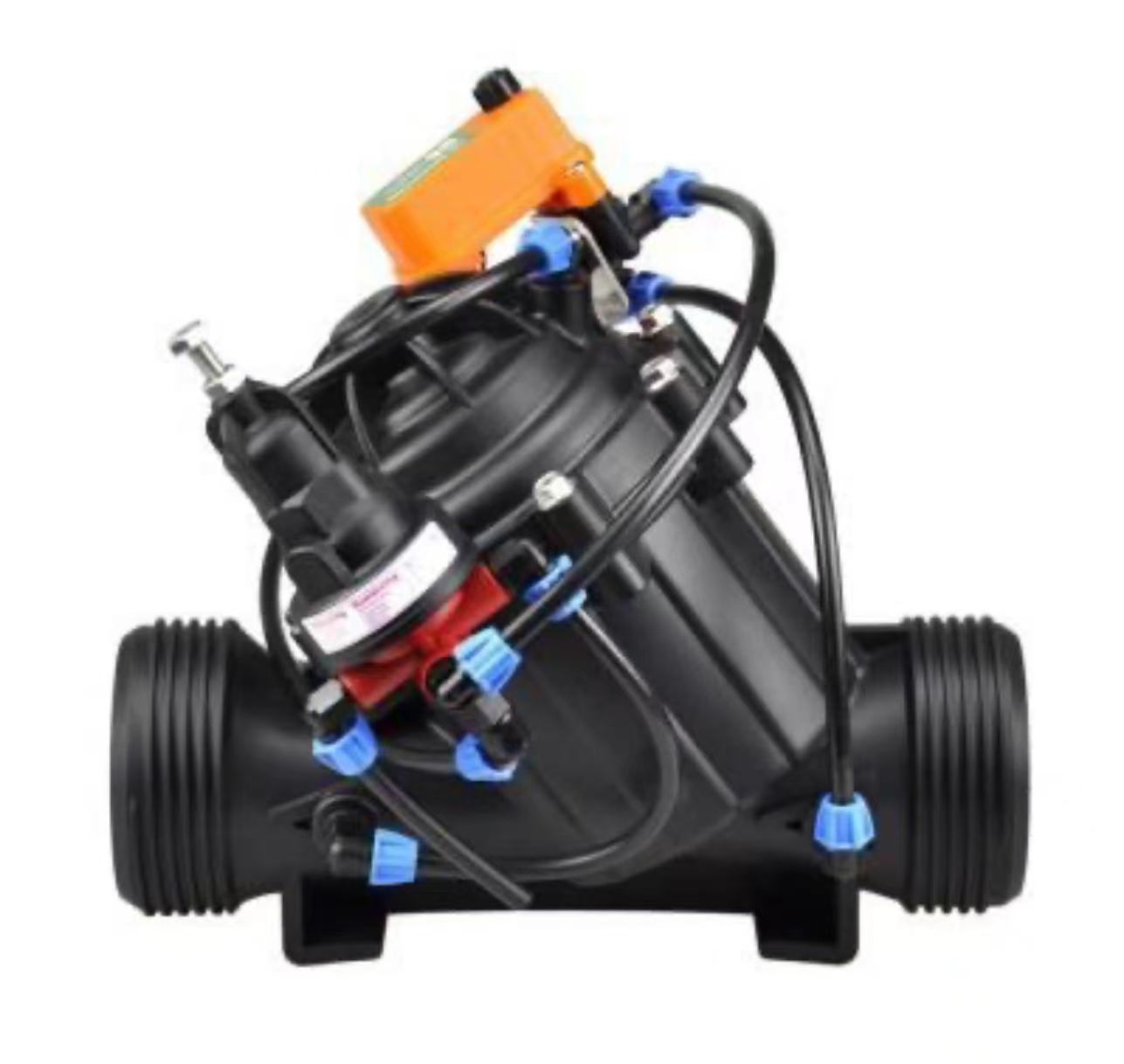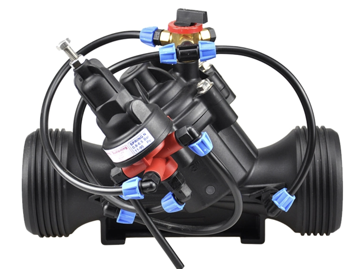 1、減壓閥由主閥、導(dǎo)閥、三向控制閥 /電磁頭組成水力控制調(diào)壓系統(tǒng)。 2、利用導(dǎo)閥控制,能自動保持穩(wěn)定出口壓力,不需要其它裝置和能源,使用簡便。 3、壓力調(diào)節(jié)精度高,減壓穩(wěn)壓靈敏可靠。 4、適用安裝在主干管保護(hù)下游滴灌系統(tǒng)或微噴設(shè)備免受持續(xù)高水壓的損壞,避免出現(xiàn)爆管。 5、本款減壓閥所采用的主閥是是隔膜式水力控制閥,由系統(tǒng)壓力驅(qū)動,水力控制閥門開啟或關(guān)Y型全通徑閥體設(shè)計(jì),過流量大,水頭損失小,反應(yīng)靈敏。 6、柔性隔膜和導(dǎo)向閥芯完美組合,耐腐蝕,不變形。 7、水力控制,操作簡單,開關(guān)省力,維護(hù)方便。 8、采用加強(qiáng)工程塑料生產(chǎn),具有良好耐候性和機(jī)械性能,經(jīng)久耐用。 1、規(guī)格:1-1/2" (Dn40),2" (Dn50),3" (Dn80),4" (Dn 100)。 2、連接方式:內(nèi)螺紋 / 法蘭 。 3、工作壓力范圍:0.35-10bar (5-145psi)。 4、壓力調(diào)節(jié)范圍:0.8-6.5bar (11-95psi)。 ![]()